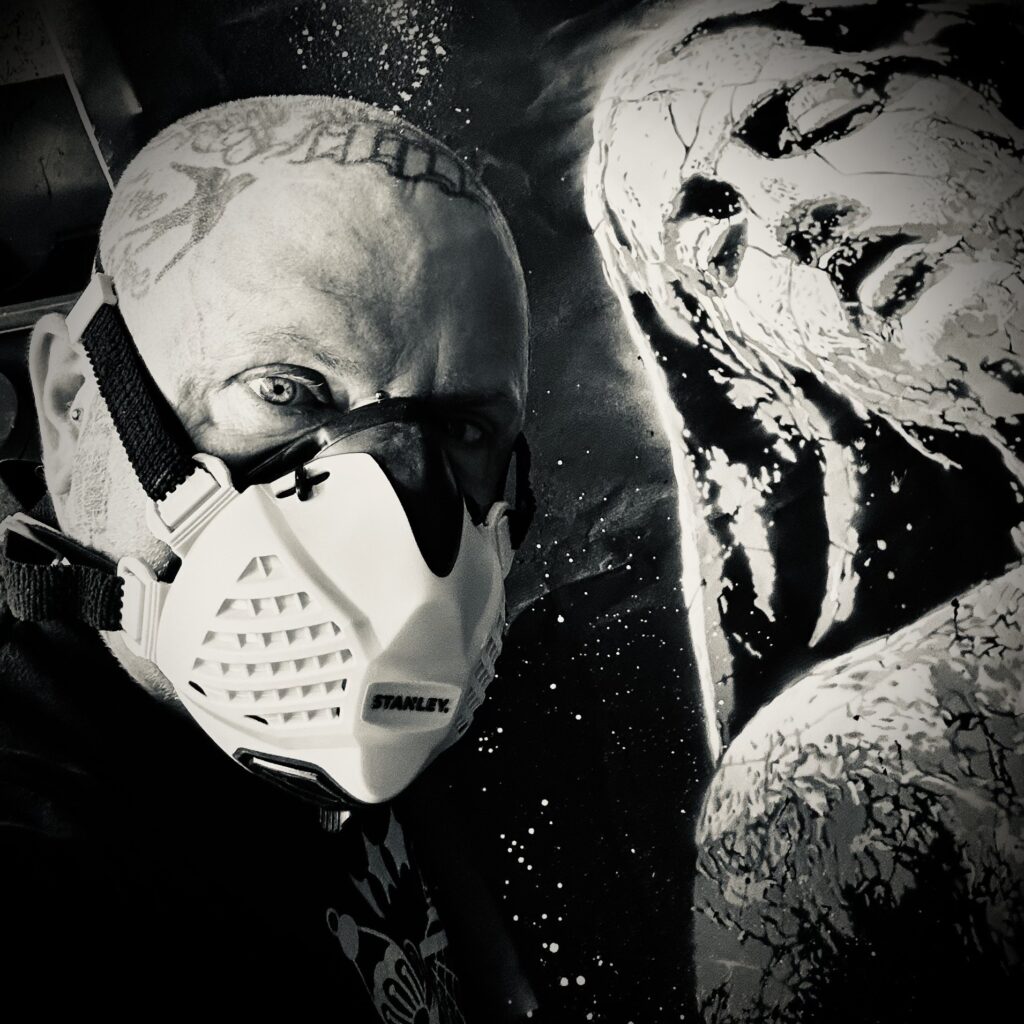 Au gré d’un détour dans la fonction publique et d’une paire de décennies à customiser, cette fois, les corps, le pochoir, dont je ne me suis jamais réellement éloigné, prend néanmoins la poussière.