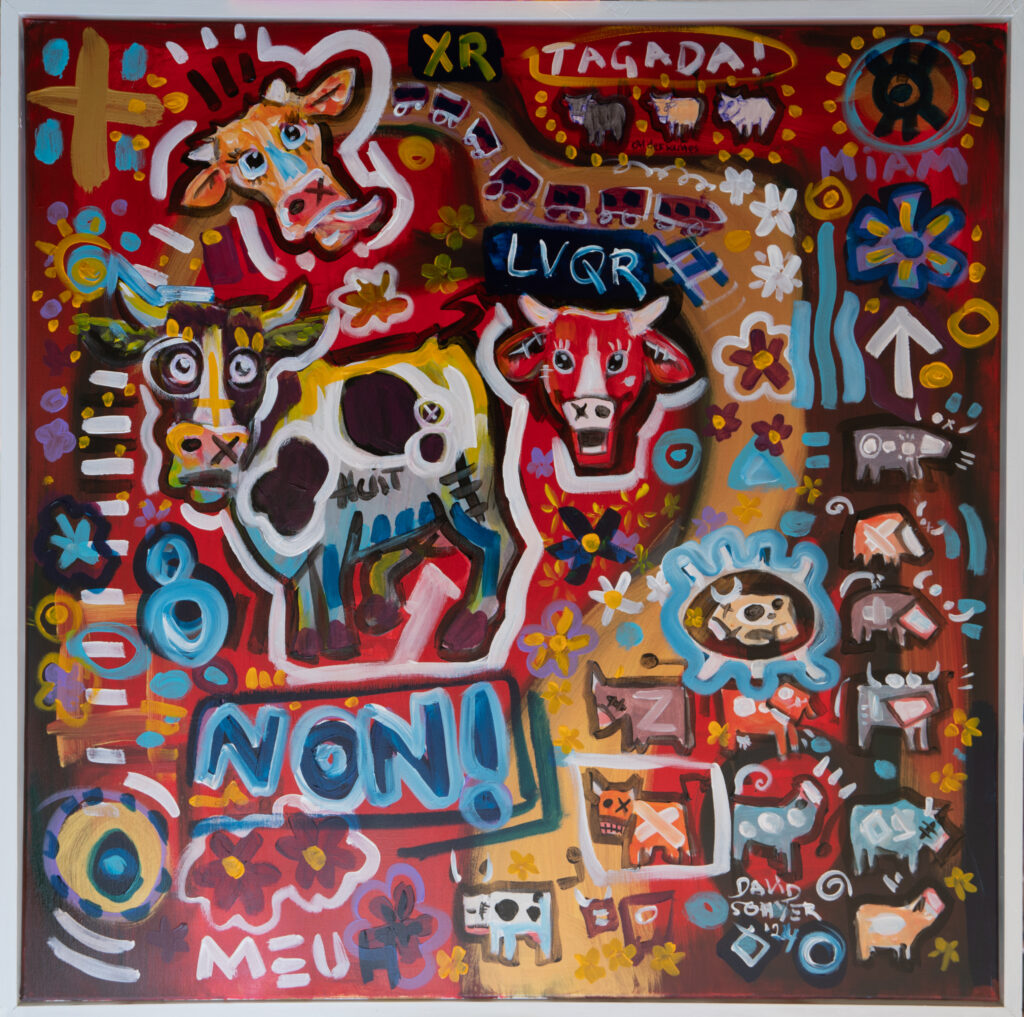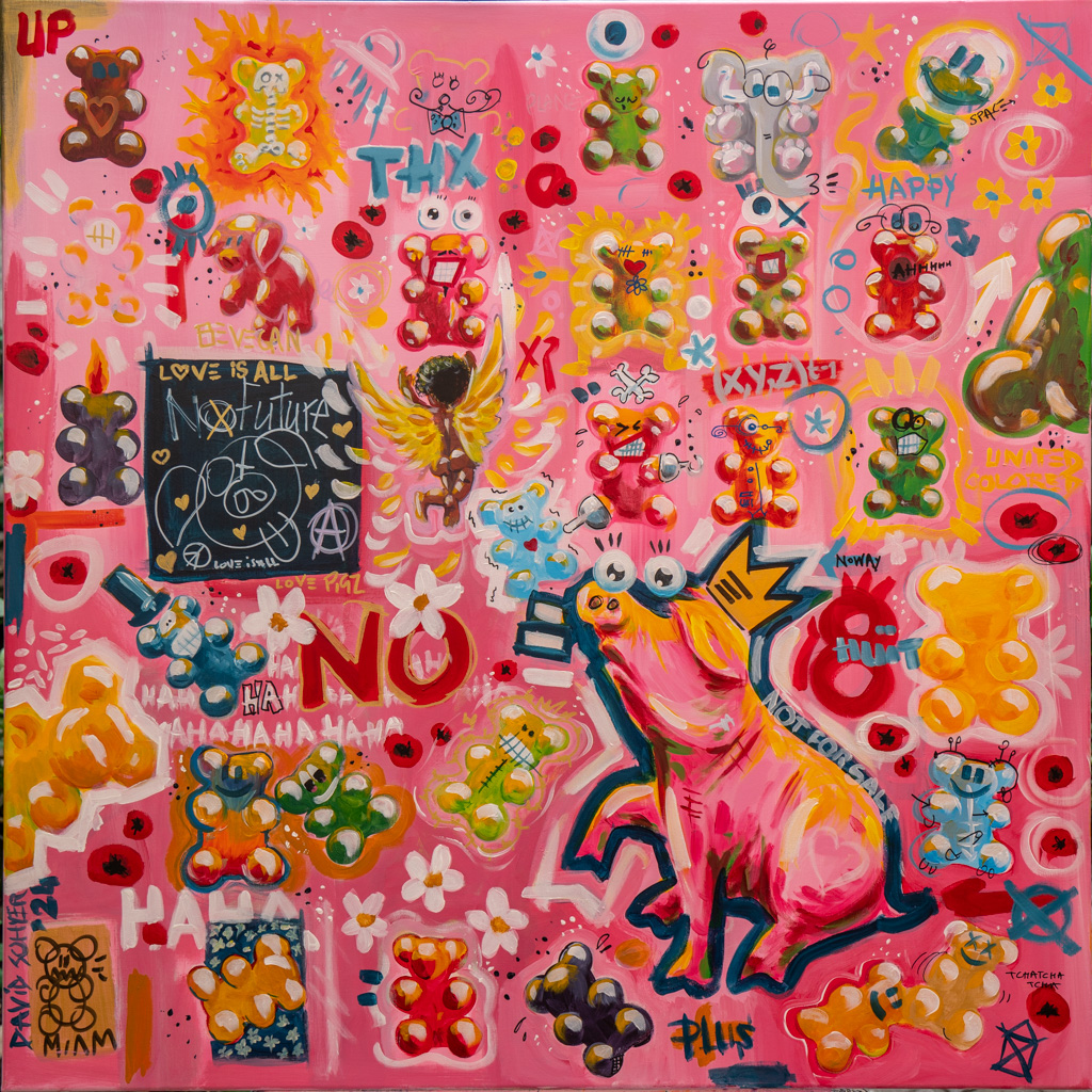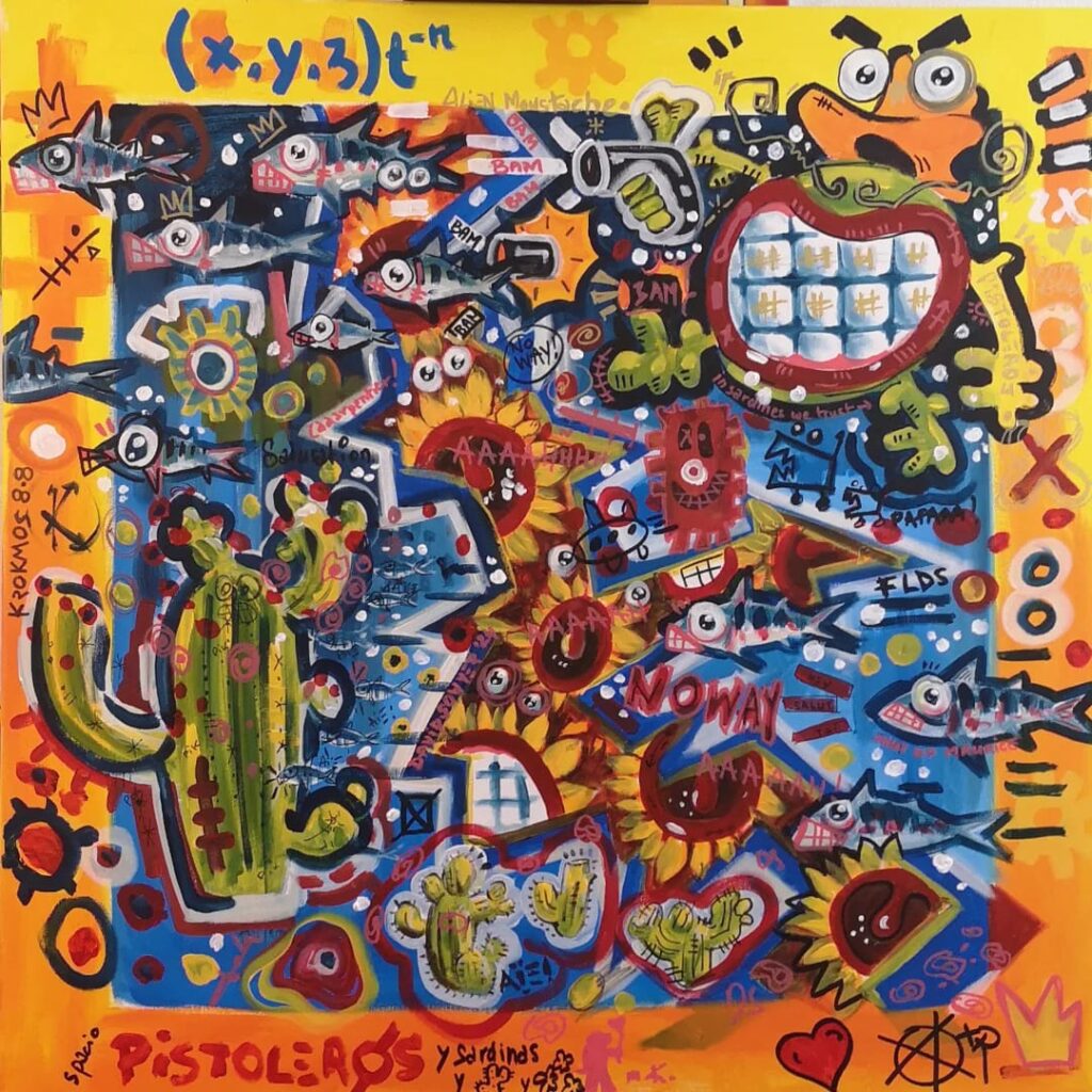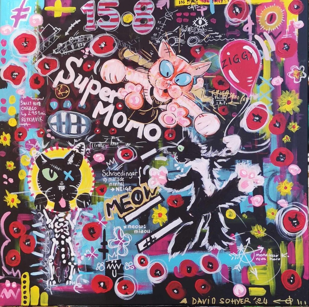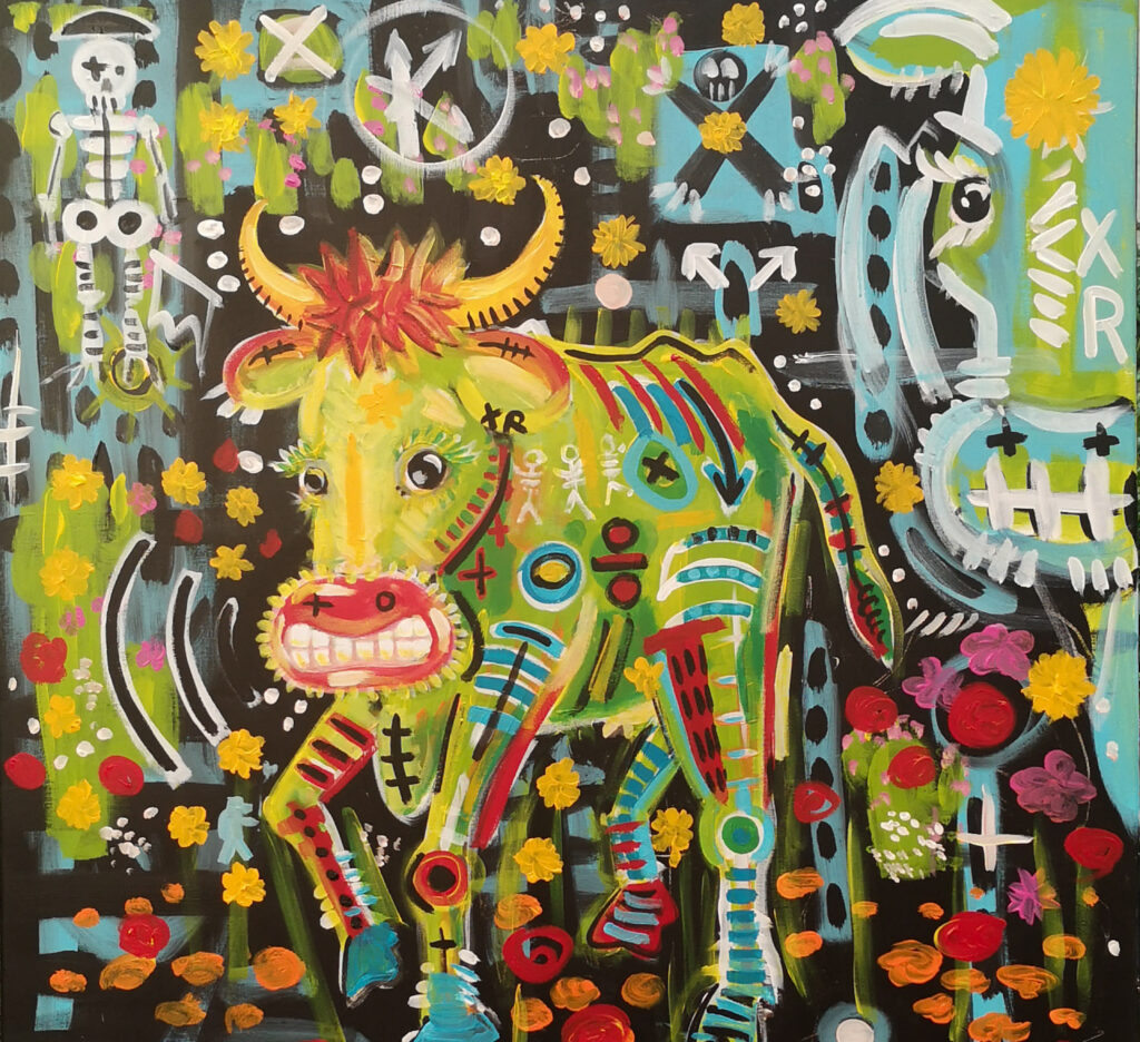 Longtemps restée personnelle, il décide récemment de confronter sa peinture aux regards. C’est pour lui l’occasion de rencontres, de partages. Si vous lui demandiez ce qu’est pour lui le sens de son travail, voilà ce qu’il vous dirait : « Des formes et des couleurs, des références pop ou iconiques, du loufoque ou du bucolique, j’ai soif de vie, de contact, d’amour et d’amitié. J’envie de dire oui, de dire non, de dire plus jamais, de résister, de construire, de jouer.
