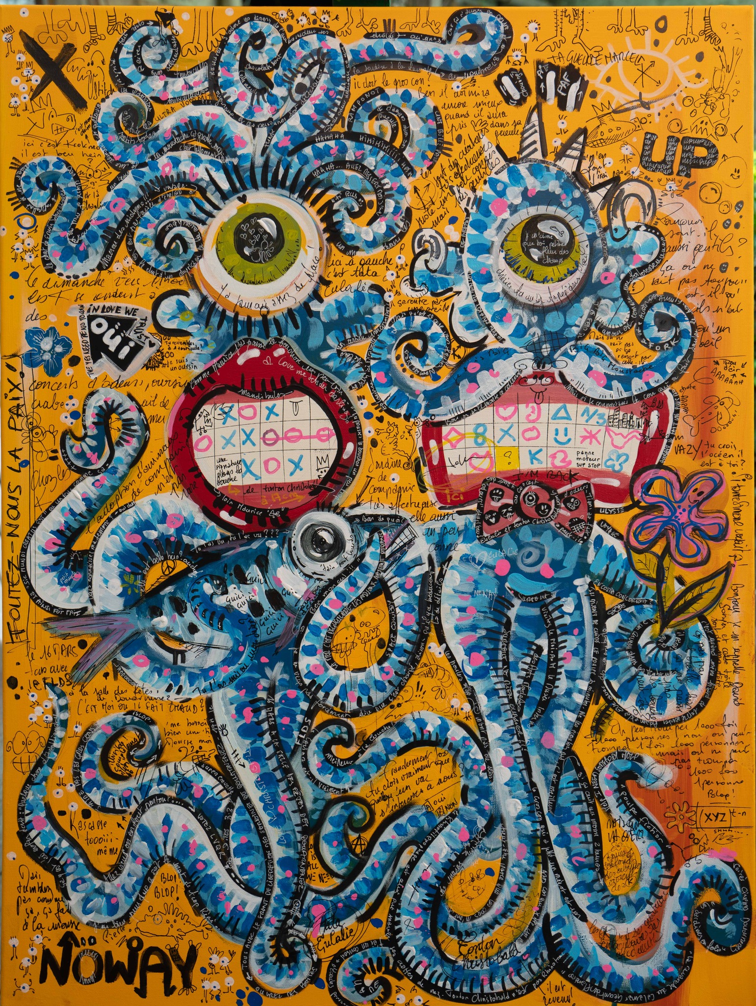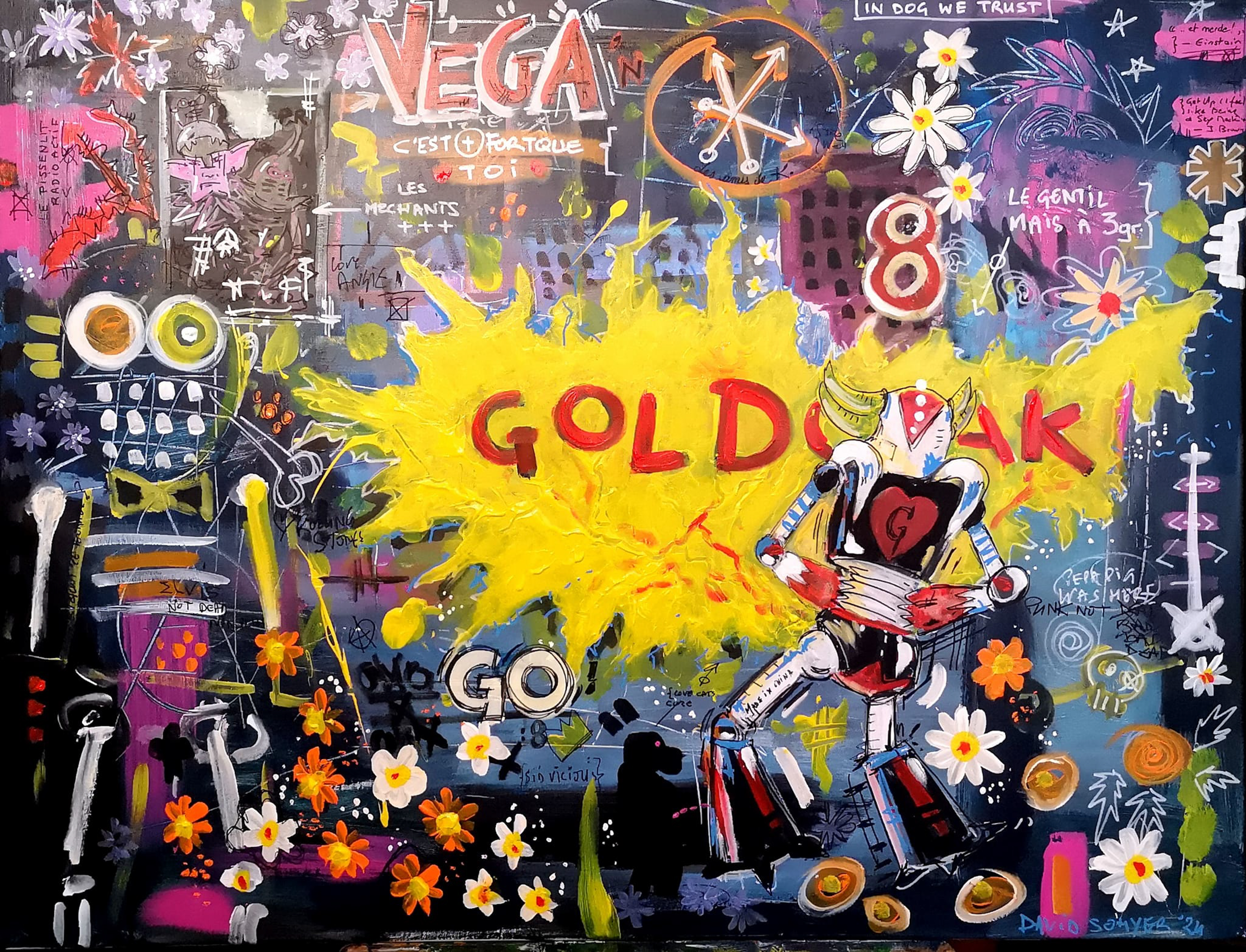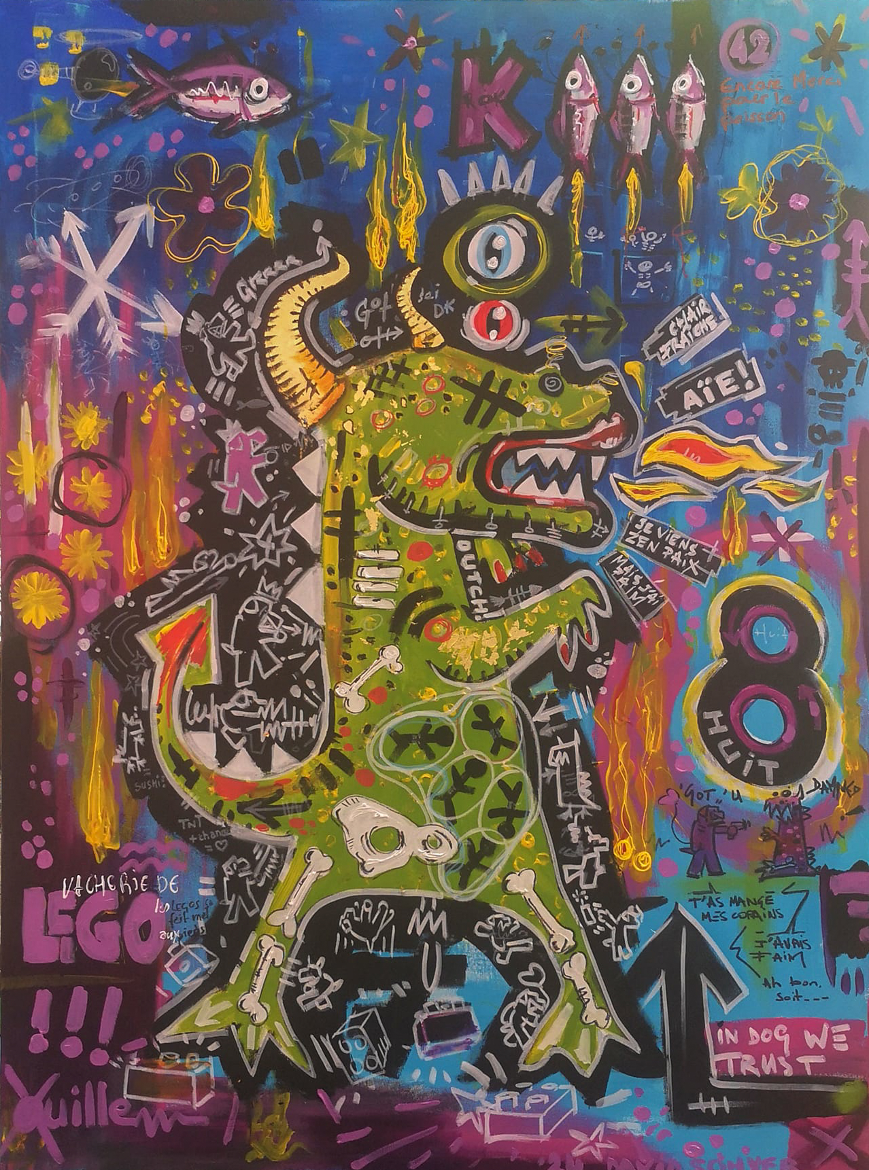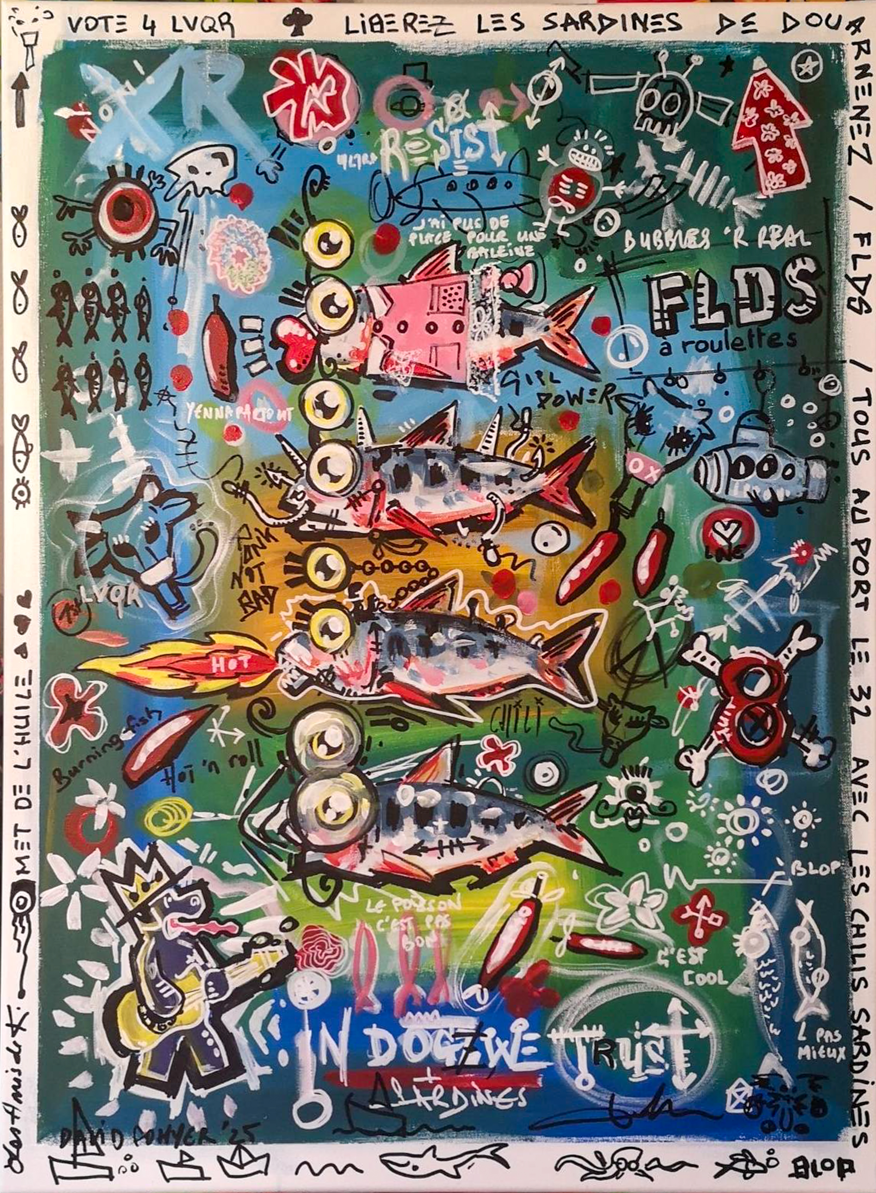 Longtemps restée personnelle, il décide récemment de confronter sa peinture aux regards. C’est pour lui l’occasion de rencontres, de partages. Si vous lui demandiez ce qu’est pour lui le sens de son travail, voilà ce qu’il vous dirait : « Des formes et des couleurs, des références pop ou iconiques, du loufoque ou du bucolique, j’ai soif de vie, de contact, d’amour et d’amitié. J’envie de dire oui, de dire non, de dire plus jamais, de résister, de construire, de jouer.