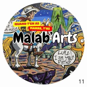 Des badges collectors, des extraits de nos oeuvres, de la sympathie en épingle ! 3 € l’unité, 10€ les 4, 2.50€ au-delà. Z’en voulez un ? Pas difficile, vous envoyez un message à David qui vous met ça de côté, ou vous le recevez chez-vous, prévoyez 2€ de livraison.